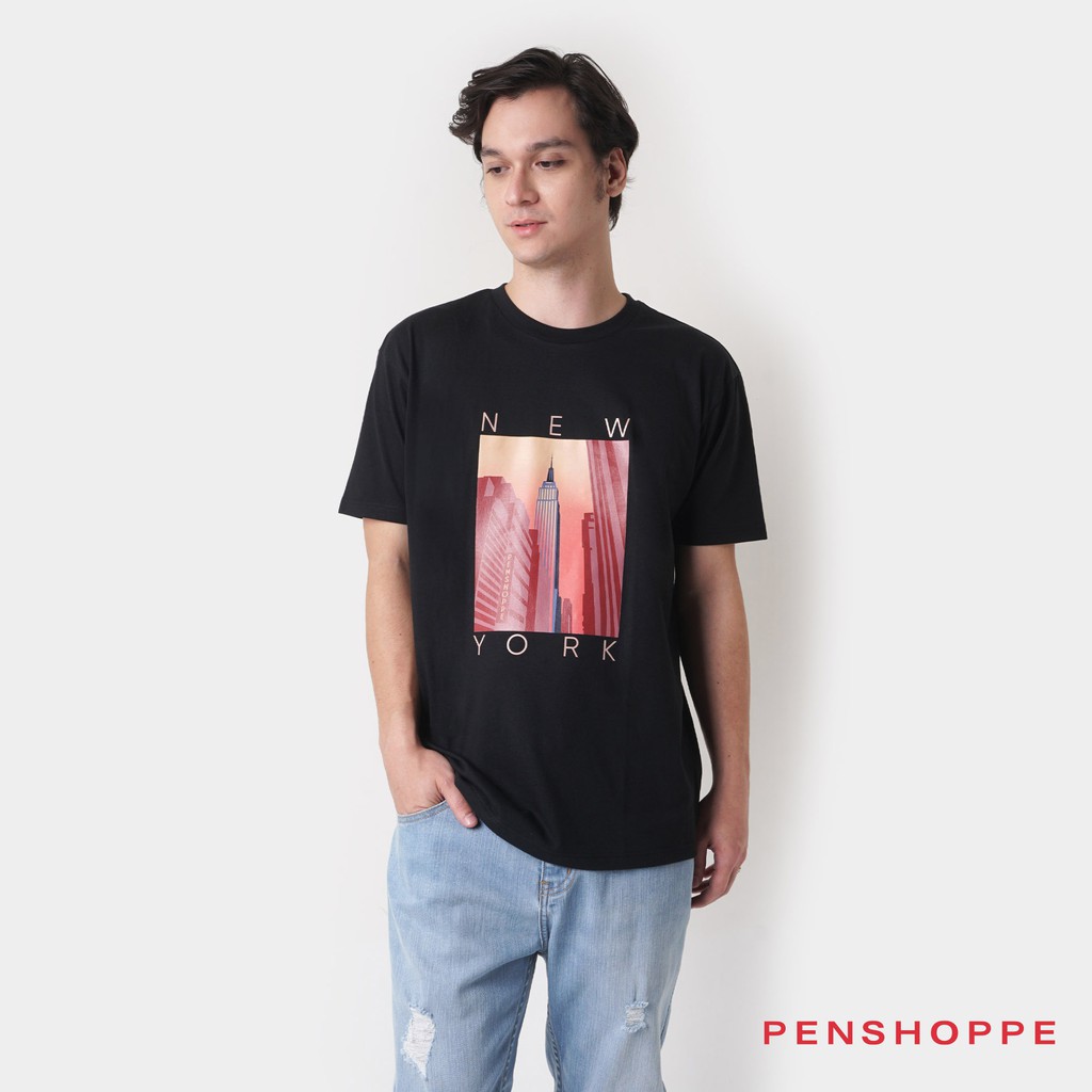 Penshoppe New York Relaxed Fit T Shirt For Men Black Shopee Philippines