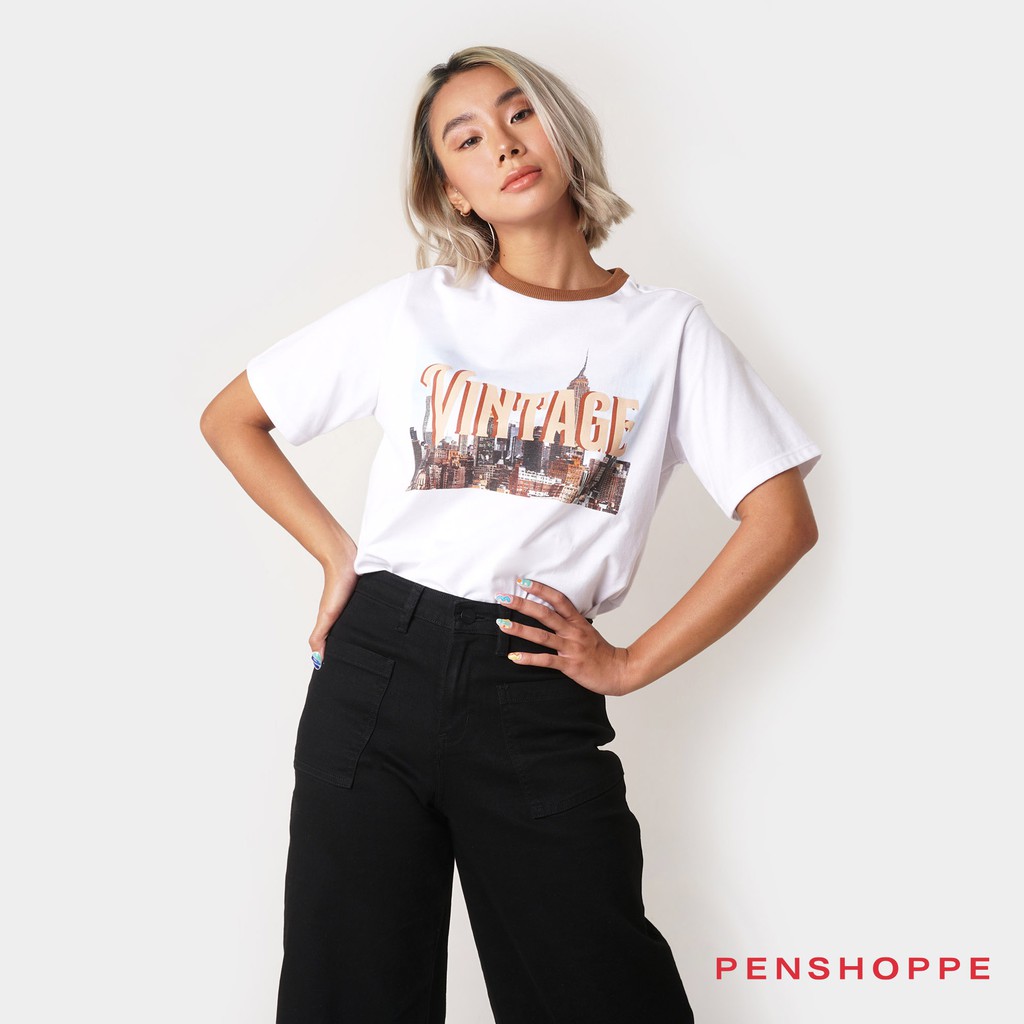 Penshoppe Vintage T Shirt With Photographic Print For Women White Shopee Philippines